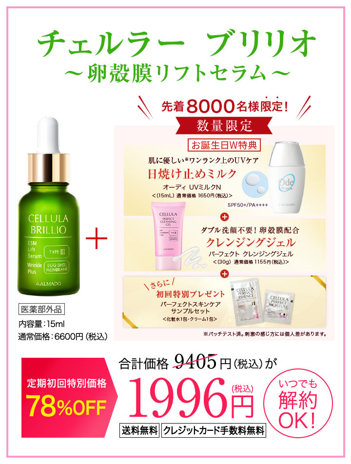 東大との10年以上の共同研究の成果でやっと、卵殻膜スキンケアとして発売されたのがこの「チェルラーブリリオ」